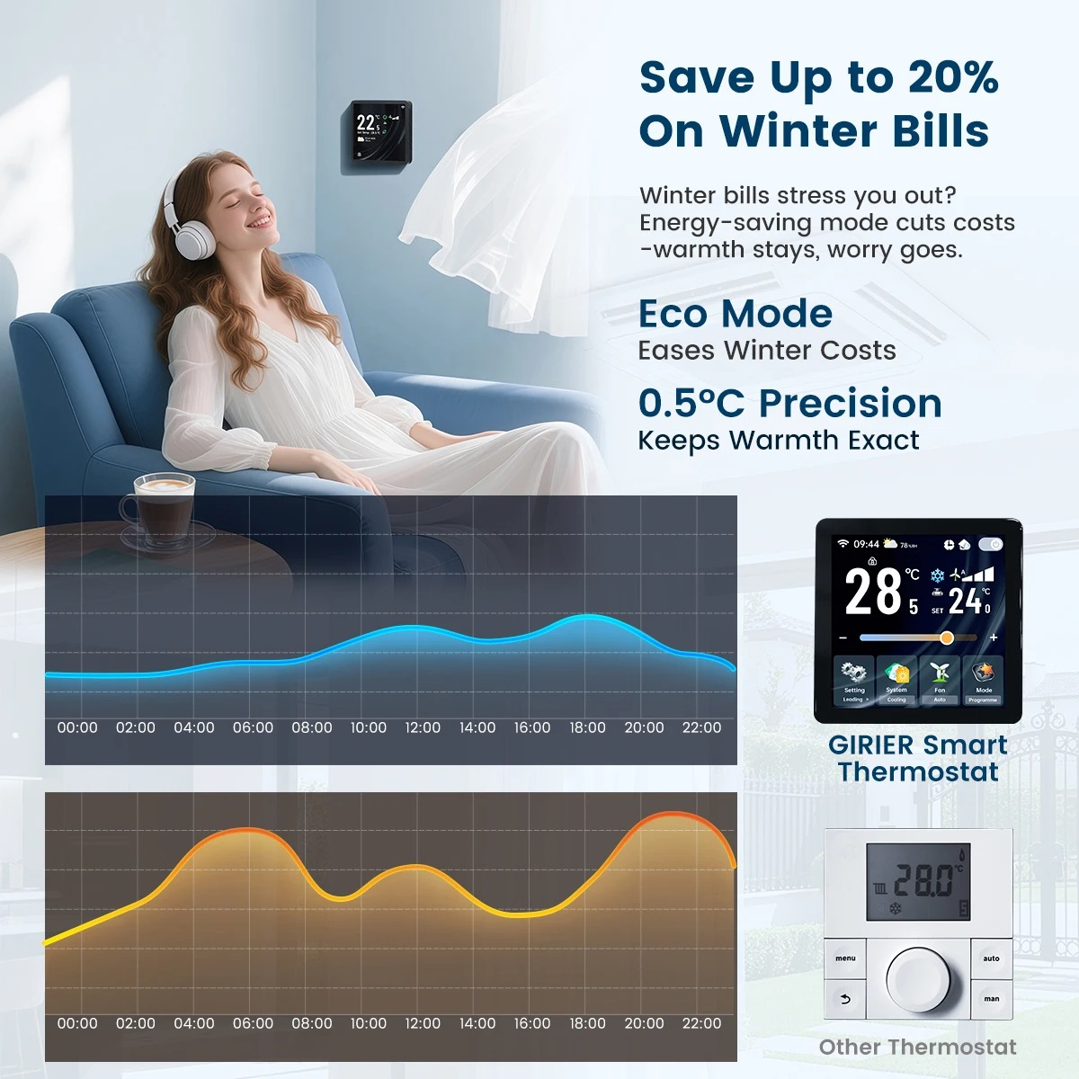 الصفحة الرئيسية اثاث ثرموستات ذكي WiFi بشاشة TFT للتحكم بالمناخ